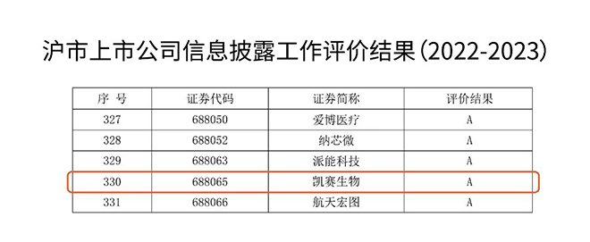 凯赛生物荣获上交所信息披露A级评价